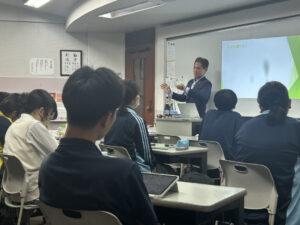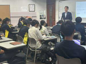 卓話では、「幸せな人生を送るためには」「お金について」といった2つのトピックスでお話してくださり、これから社会に出て将来を歩んでいく生徒にとって貴重な時間となりました。
