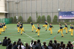最初にバトン部の発表、これまでの大会などの演目を4曲ほど披露しました。