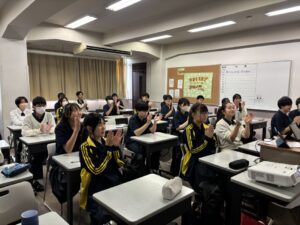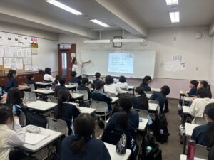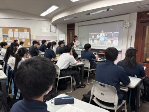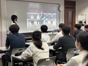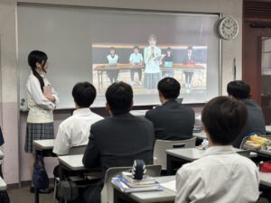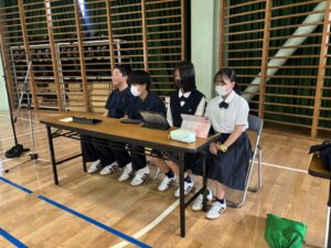 午後の5・6時間目、各教室とメイン会場をオンラインでつなぎ、全校で生徒総会を実施しました。