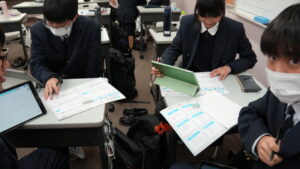 中学2年生の授業では、「中高生の生活をもっと良くするアイデア」 をテーマに、課題発見から企画づくりまでをグループで進めてきました。
