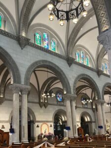 当日は結婚式が行われていて、内装も少し結婚式仕様になっていました。私たちが入れる場所は少なかったですが、ステンドグラスがとても綺麗だったのが印象に残っています。