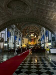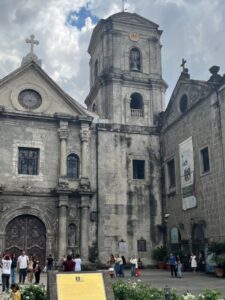 イントラムロスは、333年続いたスペイン植民地時代、スペイン人のみが入れるとされていた地です。内部にはマニラ大聖堂やサンチャゴ要塞、また世界遺産として登録されているフィリピン最古の石造教会であるサンアグスティン教会などがあります。私たちが最初に訪れたのは、マニラ大聖堂です。この大聖堂は、地震や第二次世界大戦などの影響で、なんと合計8回もの再建が行われたそうです。